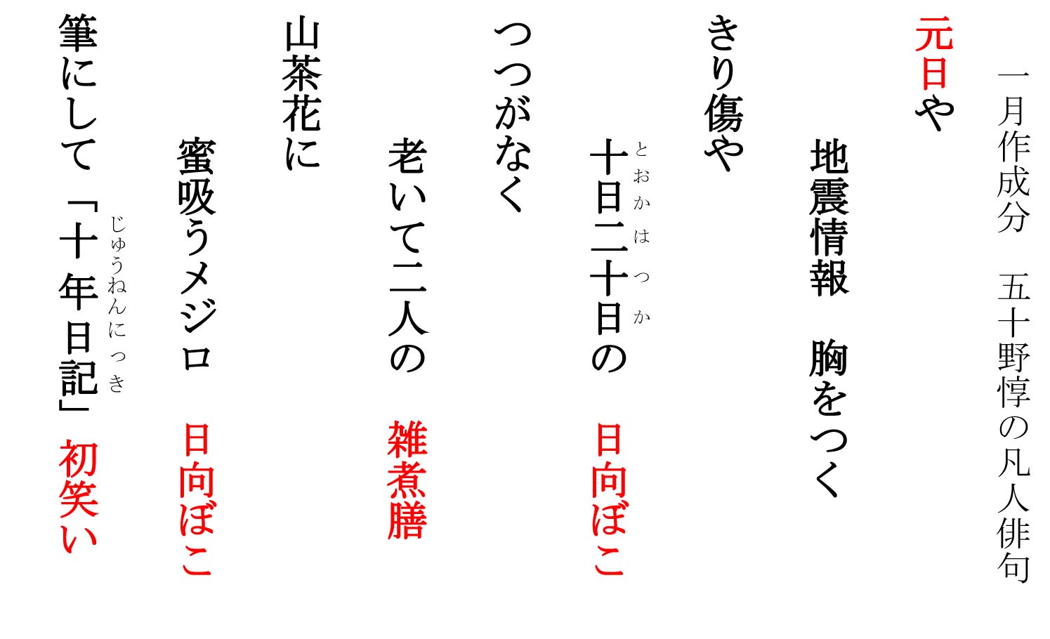 (俳句)筆にして「十年(じゅうねん)日記(にっき)」初笑い