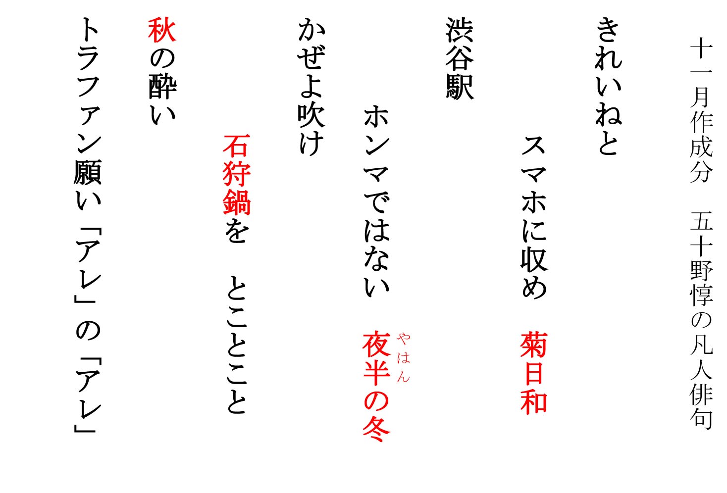 (俳句) 渋谷駅 ホンマではない 夜半(やはん)の冬