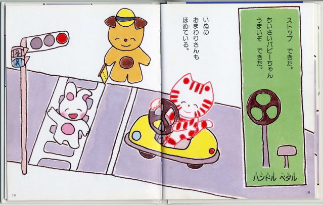 「パピーちゃんのまめじどうしゃ」は交通安全絵本にもなっています。