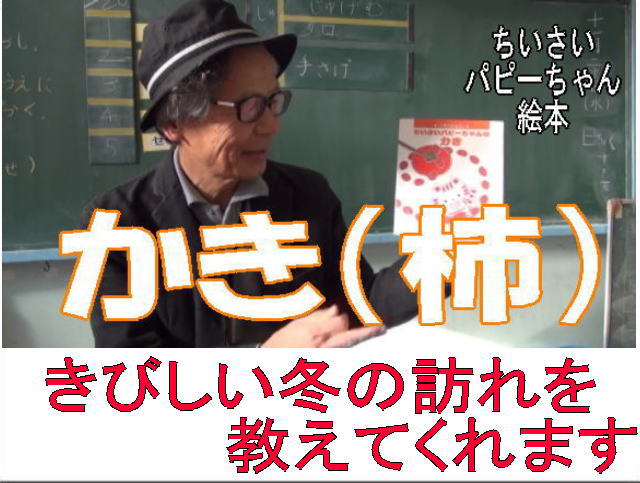 精一杯知恵を働かせて、たった1つの柿を取ろうとする幼児のユーモラスな行為から、移り行く自然の温かさ、きびしい冬を描くお話。