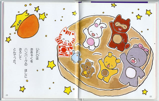 今、パピーちゃんとお友達は、大好きなハンバーグの星の上に乗りこみました。