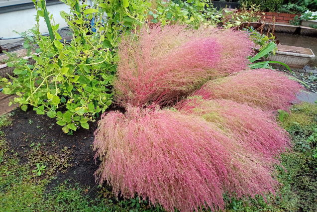 雨に打たれ倒れたコキアです。