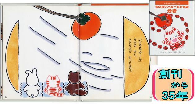 柿の実を取るというなんでもない行為でありながら、次第にお話の興味を盛り上げていくます。最後に柿の実を落としてくれるなは・・・なんでしょうか?