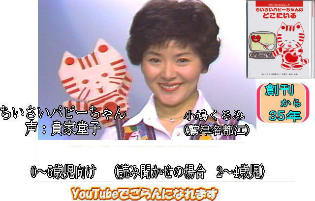 ♪ ちいさいパピーちゃん(声・貴家堂子)と小鳩くるみさんの対話、それから童謡「こいのぼり」も合わせて楽しめます。内容 4分32秒 、CM 00秒