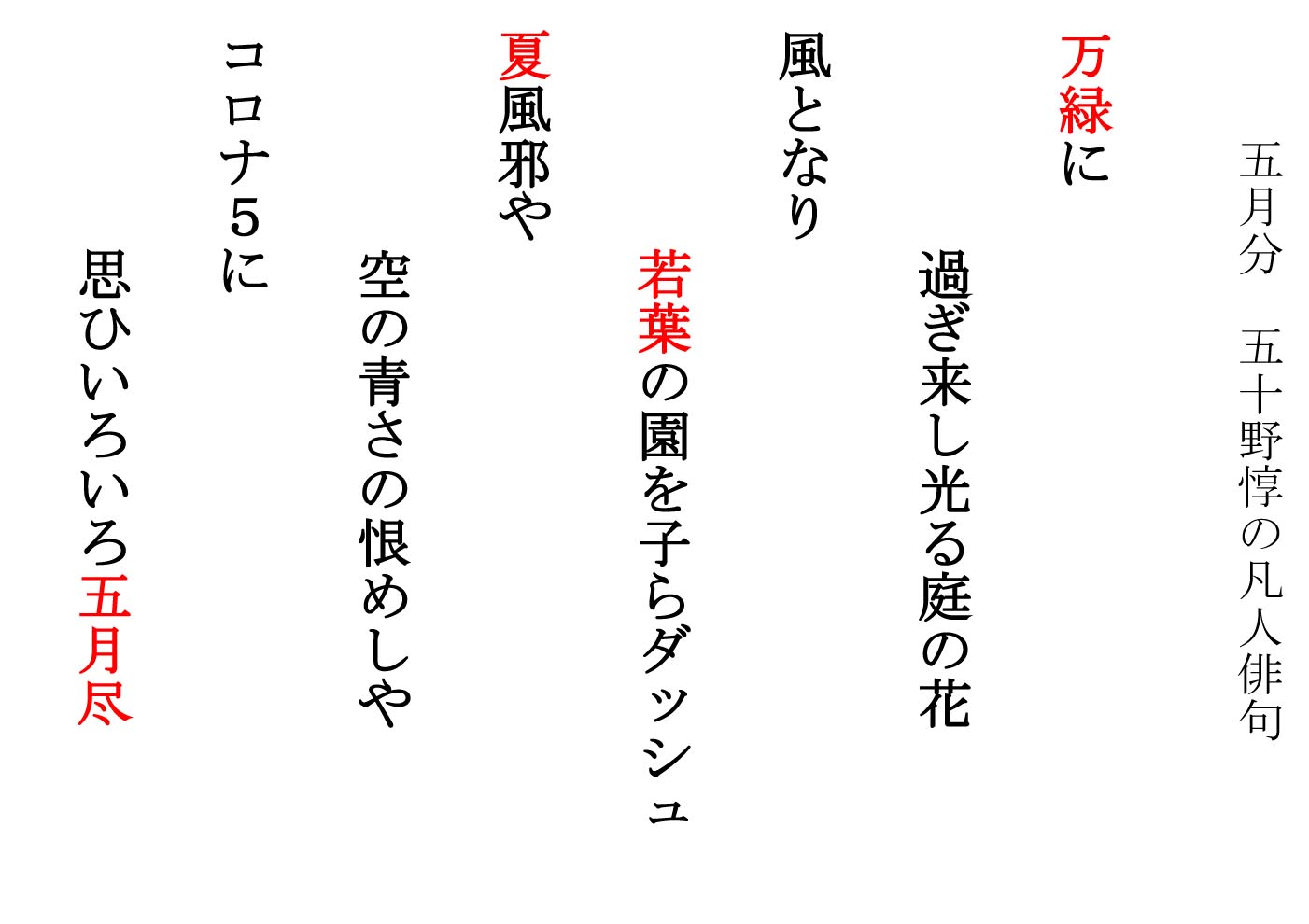 2023(令和05)年5月作成 俳句café五十野惇(84歳)